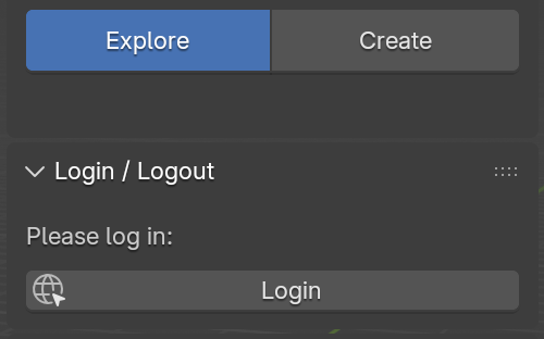 Once you log in, you'll see additional N-panel options. Open in the interface in the "Explore and Search" tab and you'll see the browsing interface! From here you can explore creations from other users, view shop posts, and current event uploads!